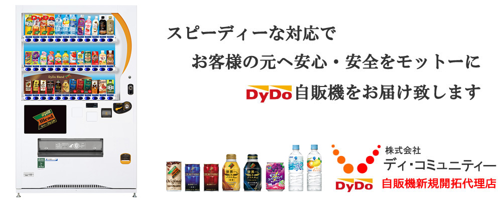 株式会社ディ・コミュニティーはお客様に愛される自動販売機の新規設置代理業を営んでおります。長い年月に培ったノウハウと人脈を活かし個人様から企業様までスピーディーな対応と丁寧な業務を心がけ、一流スタッフの確かなオペレーションと販売向上の取り組みにてお客様へ喜びと感謝の気持ちをお届け致します。